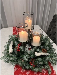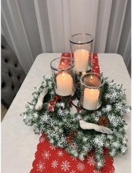 Piros bogyókkal és tobozokkal díszítve kiemeli bármely belső teret és ünnepi varázst ad az alkalmaknak.