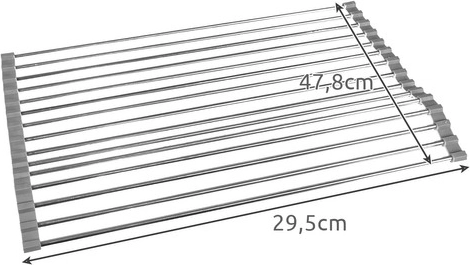 - Specifikációk - Anyag: szilikon + fém; szín: szürke + ezüst; rúdköz: 2 cm; méretek: 29,5 x 47,8 cm; tömeg: 183 g; csomagolt tömeg: 260 g.