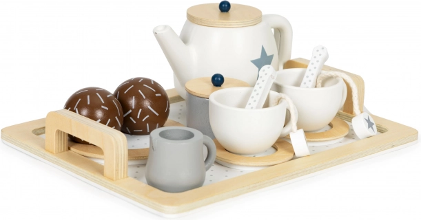 A készletnek köszönhetően a gyermek felnőttet játszhat, és meghívhat finom teára és édes frissítőre. A szórakozás mellett gyermeke fejleszti a fantáziáját és a kézügyességét, valamint megtanul teát készíteni és elsajátítja az asztali illemszabályokat.