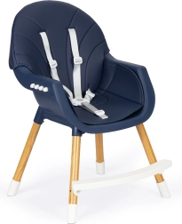 Stílusos 2 az 1-ben ECOTOYS gyerek etetőszék sötétkék színben, amely együtt nő gyermekével. Két magasságban használható, könnyen tisztítható huzattal, levehető, formázott tálcával, kényelmes ülőrésszel és 5 pontos biztonsági övekkel. A stabil fa lábak csúszásgátló végekkel és a mosható huzat biztonságot és egyszerű karbantartást garantálnak. Maximális teherbírás 20 kg.