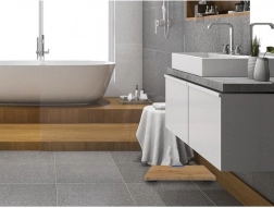 - természetes bambuszlap, amely illik a modern fürdőszobába