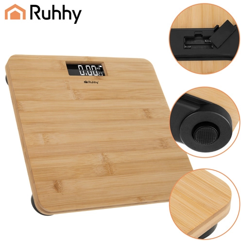 Stílusos bambusz személymérleg nagy LCD kijelzővel, amely pontosan méri testsúlyát egészen 180 kg-ig. Automatikus kikapcsolást kínál 8 másodperc után, csúszásgátló lábakkal a biztonságos használatért és praktikus akkumulátorjelzővel. Ideális a mindennapi testsúly-ellenőrzéshez, sportolóknak és fogyókúrázóknak is.