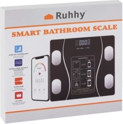 A RUHHY intelligens fürdőszobai mérleg pontos LCD kijelzővel és Bluetooth kapcsolattal akár 8 testparamétert mér, többek között a testsúlyt, a BMI-t, a testzsírt, az izomtömeget, a testvizet és a csonttömeget. Az elegáns fekete edzett üveg akár 180 kg-ot is elbír, a kijelzőn továbbá látható a szobahőmérséklet és az akkumulátor töltöttsége. Az adatok a díjmentes OKOK International alkalmazással szinkronizálódnak az átlátható fejlődéskövetéshez.