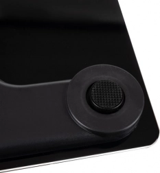 Stílusos fekete platform 0,3 cm vastag edzett üvegből, akár 180 kg teherbírással, stabil és biztonságos használatra a fürdőszobában.