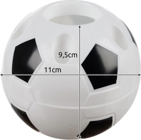 Stílusos, futball-labda formájú asztali rendező, amely minden rajongónak örömet szerez. A fő nyílásnak és a további 5 kisebb nyílásnak köszönhetően rendben tartja az íróasztalt, és helyet kínál dokumentumoknak, ceruzáknak, ollónak és apró eszközöknek. A lecsavarható fedél könnyű tisztítást és karbantartást tesz lehetővé.