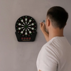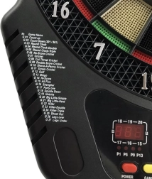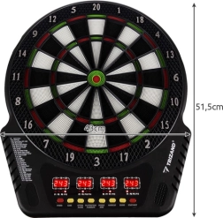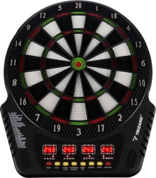 A TRIZAND elektronikus darts tábla kiváló választás kezdőknek és haladóknak egyaránt. A masszív felépítés és a pontos találatérzékelés gondoskodik a korrekt eredményekről, míg az LCD kijelzők jól láthatóan mutatják a játék menetét és a játékosok vagy csapatok pontszámait. A 27 beépített játéknak és akár 243 konfigurációnak köszönhetően sosem fogsz unatkozni.