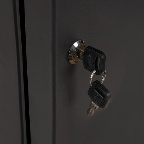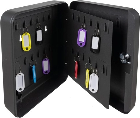 A praktikus és tartós MALATEC kulcsszekrény vasból készült a nagyobb biztonság és hosszú élettartam érdekében. Belül két fix sín és egy mozgatható „könyv” elválasztó található – összesen 48 akasztó a kulcsok számára. Minden akasztó 1–48-ig számozott matricával jelölhető, így minden kulcsnak megvan a maga pontos helye.