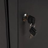 A szekrény a mellékelt 2 kulccsal zárható. Az előkészített nyílások és a szerelőkészlet (tiplik és csavarok) gyors fali rögzítést tesznek lehetővé.