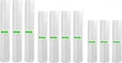 Azonnal használatra kész: 9 fóliatekercs, 5 nagy tasak, levegőelszívó cső, palackdugó és praktikus vágó.