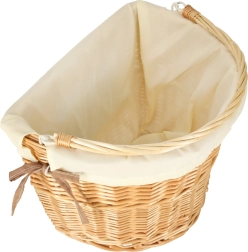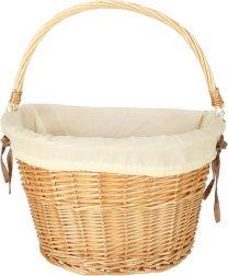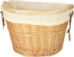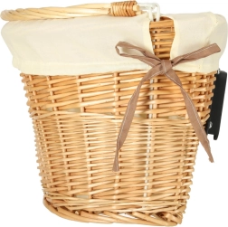 A fonott kerékpárkosár remek kiegészítő minden biciklis kiránduláshoz, bőséges hellyel mindennek, amire útközben szükséged lehet. A stílusos megjelenést a fehér textilbélés emeli ki, amely egyedi külsőt kölcsönöz a kosárnak, és egyben megóvja a holmikat a sérüléstől.