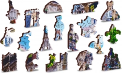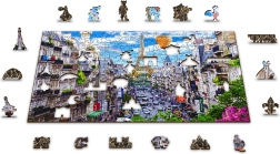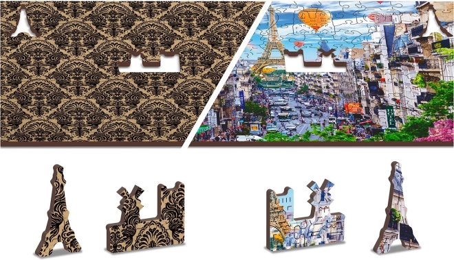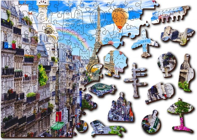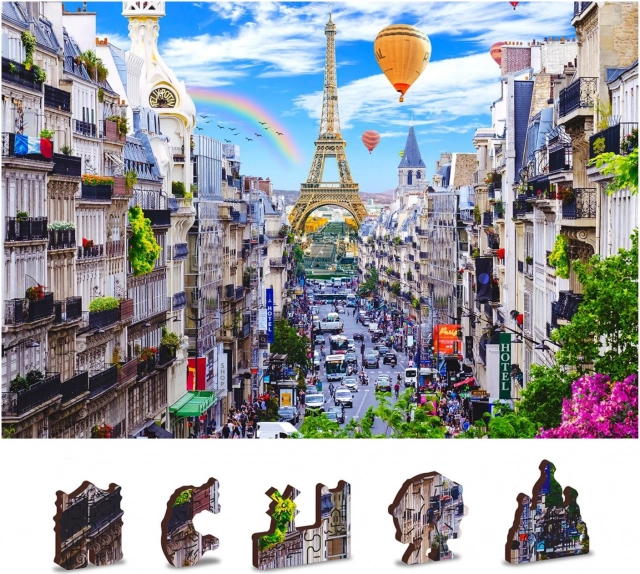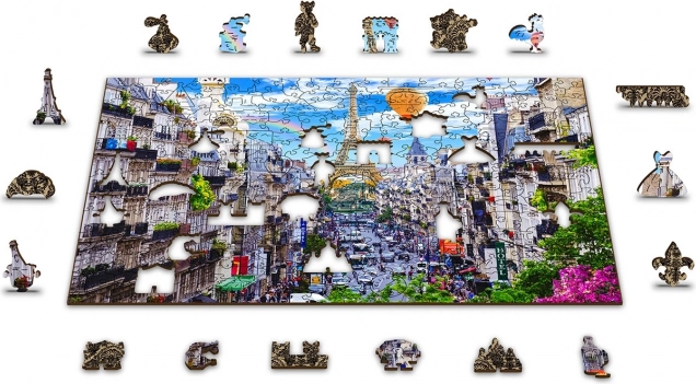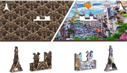A Fa puzzle Mozgalmas Párizs a WOODEN CITY-től különlegessége kétoldalas kialakítása és speciálisan formázott darabjai, amelyek az összerakás során életre keltik a teljes jelenetet. Az összerakás nehezebb a különböző alakú darabok miatt, de egyben szórakoztatóbb is. Igazi kihívást jelent a tapasztalt puzzle-rajongóknak.
