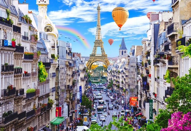 Mindkét oldal különböző élményt ígér. Az egyik oldalon Párizs színes motívuma varázsol el. A másikon ismétlődő mintákra számíthat az alakformához igazodó összerakáshoz.
