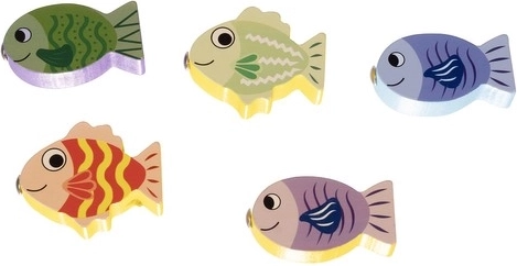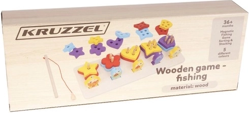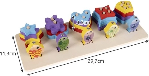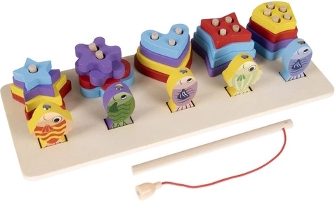 A válogató doboz öt formát tartalmaz, az első sor pedig a horgászjáték számára készült, amely fejleszti a koncentrációs képességet.