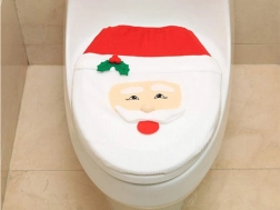Puha szövetborító a WC-ülőkére, mosolygós Mikulás arccal, amely a rugalmas szalag révén a legtöbb ülőkéhez illeszkedik.