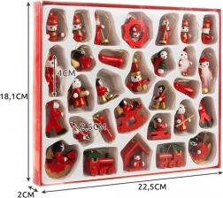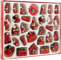 Fából készült karácsonyi díszek elegáns kiegészítők a karácsonyfájára. Ez a 30 figurás készlet hagyományos piros-arany kombinációban ideális módja annak, hogy varázslatot adjon az ünnepi dekorációjához.