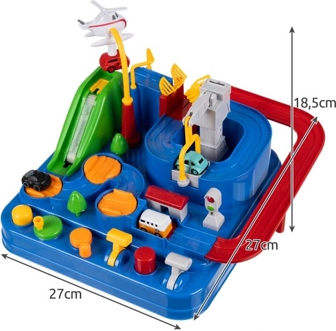 A színes pálya nem csak szórakoztat, hanem segít a gyermekek fejlődésében, mivel elősegíti a logikai gondolkodás képességüket. Az egész pálya biztonságra lett tervezve éles szélek nélkül, minőségi anyagokból.