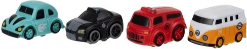 A készlet négy különböző autót és egy helikoptert tartalmaz, ami biztosítja a változatosságot és a gyermekek végtelen szórakozását.