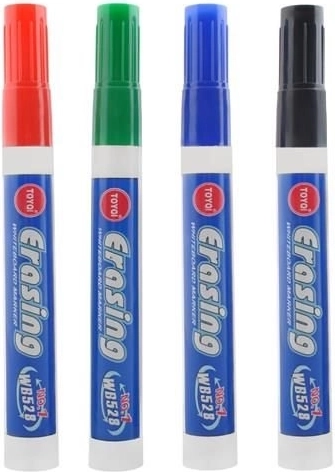 A fehér táblákra csak speciálisan tervezett filctollakkal írhatsz. Ezek a filctollak és táblamarkerek szárazon törölhetők radírral vagy tisztítókendőkkel. A fehér tábla tollak kúpos heggyel rendelkeznek, ami kényelmes és gördülékeny írást biztosít. Az új technológiának köszönhetően számos előnye van, mint a kiváló láthatóság nagyobb távolságból, megszakítás nélküli vonal és az a tény, hogy nem okoz nem kívánt foltokat.