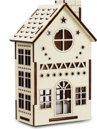 Varázsolja el otthonát egy fából készült csillagvizsgáló miniatűrrel, finom csillag alakú kivágásokkal. Ez a nagyobb házikó 3 mm-es nyárfából készül, összeszerelve érkezik, és belül LED mécsest rejt cserélhető 3 V-os elemmel. Kellemes, hangulatos fényt ad, és stílusos dekorációként ideális a csillagok és a varázslatos atmoszféra kedvelőinek.