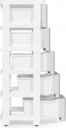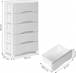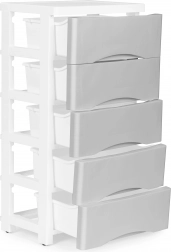 Ez a gördíthető fiókos szekrény az univerzális fehér-szürke színkombinációval rendet visz a mindennapokba. Remekül használható a fürdőszobában kozmetikumok és tisztítószerek, a gyerekszobában játékok és építőkészletek, illetve a dolgozószobában irodaszerek tárolására. Az öt mély fiók bőséges helyet biztosít, az ergonomikus előlapi fogantyúk pedig kényelmes kihúzást garantálnak.