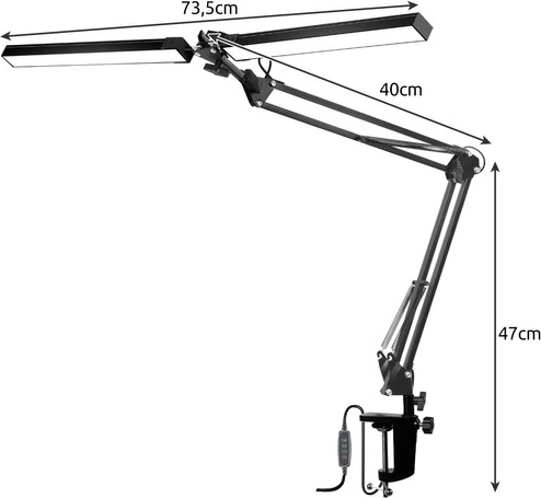 Ez az állítható rajzolóasztali LED lámpa tökéletes eszköz minden otthoni vagy irodai munkaterületre. Kiváló minőségű anyagokból készült, ideális olvasáshoz, tanuláshoz vagy számítógép melletti munkához. Két külön fényforrással rendelkezik, amelyek függetlenül szabályozhatók, lehetővé téve a fény precíz irányítását.