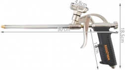 Megbízható PU-hab pisztoly szereléshez, tömítéshez és szigeteléshez. A robusztus fémkivitel hosszú élettartamot és munkastabilitást biztosít, míg az ergonomikus műanyag markolat biztos fogást és kényelmet nyújt hosszabb használat során is. A hosszú fúvóka révén könnyen elérhetők a hézagok és a szűk terek.