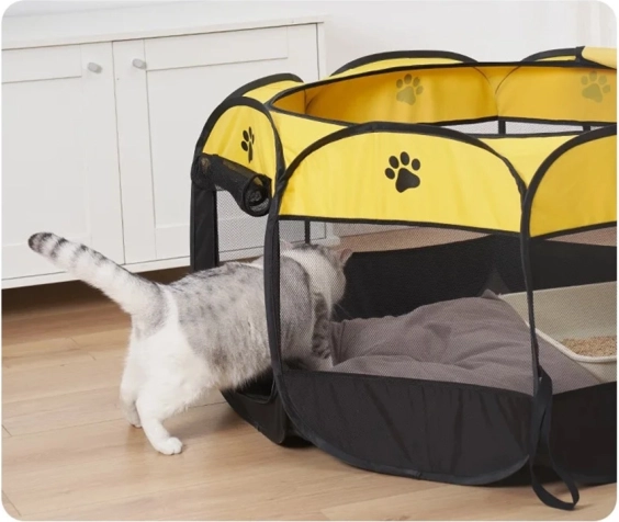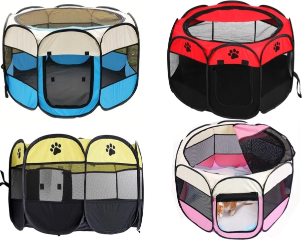 Összecsukható kennel kutyáknak és macskáknak ideális megoldás a háziállat számára. Biztonságos, kényelmes és könnyen hordozható környezetet biztosít háziállatának, ideális utazáshoz vagy kültéri használatra.