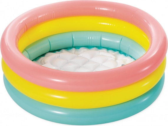 Biztosítson gyermekei számára szórakozást a napon ezzel a felfújható medencével, amely ideális kültéri vízi játékokhoz. A medence tartós vinilből készült, és három vidám színű gyűrűvel van felszerelve. A puha felfújható alj kényelmet és biztonságot nyújt a gyermekeknek, akik szeretni fogják a pancsolást.