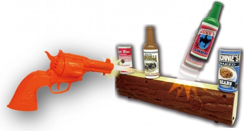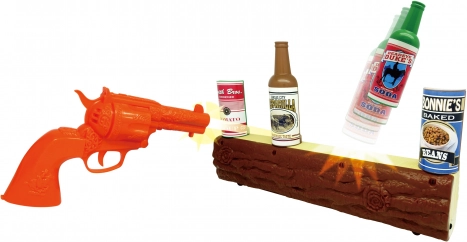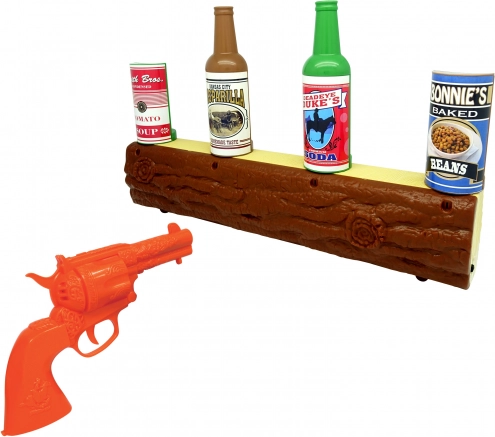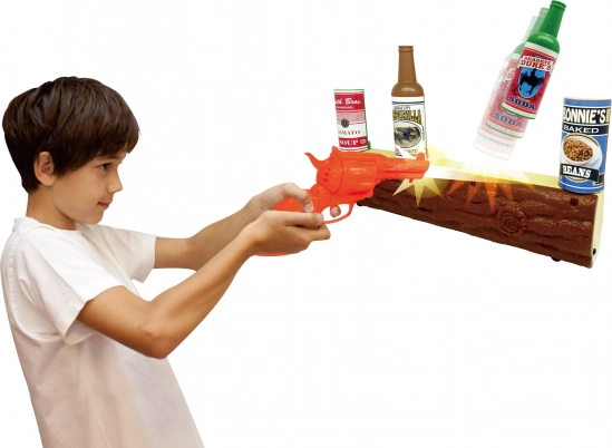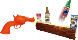 A készlet célpontot, revolvert és dekoratív kiegészítőket tartalmaz, amelyek segítségével a gyerekek megalkothatják a saját Vadnyugatukat.