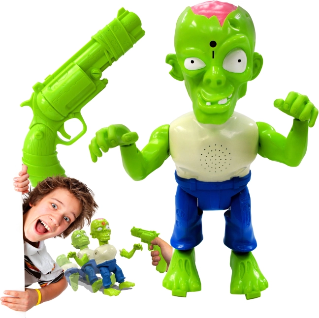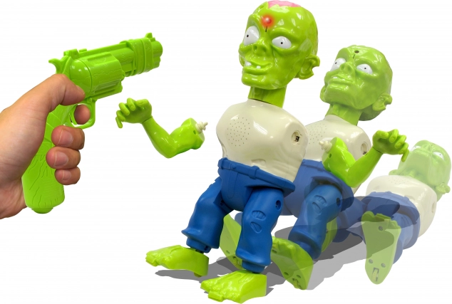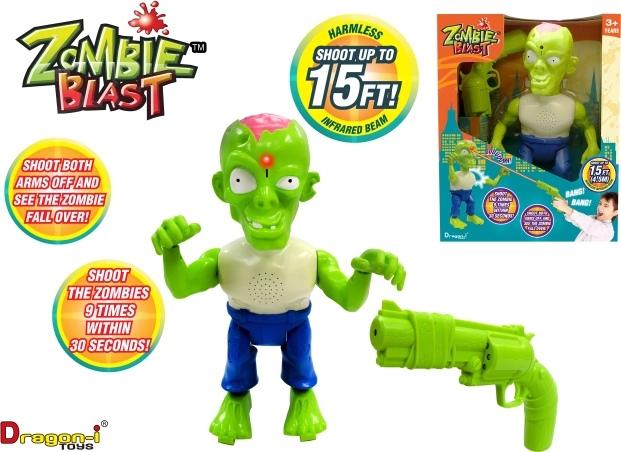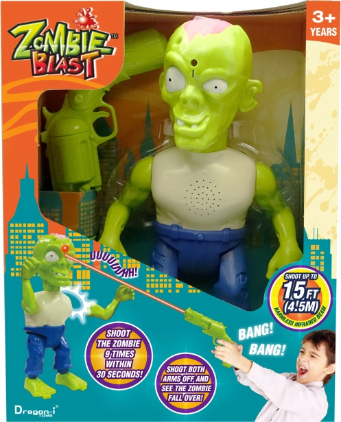 A fiatal marsallok stílusosan fejleszthetik koordinációs képességeiket ezzel a nagyszerű, profi Zombie lövészszettel. Ez az ötletes készlet golyók helyett infravörös sugarakat használ, így a kezdő pisztolyforgatók akár 6 m távolságból is lőhetnek a célokra. Ledönthetik vele a zombikat, és amikor eltalálják a célpontot, jellegzetes zombi nyögést hallanak, miközben testrészek esnek le. Remek módja nemcsak a képzelet serkentésének és a játék támogatásának, hanem a kéz–szem koordináció javításának is, és a biztonságos infravörös célkövetésnek köszönhetően beltéri használatra is alkalmas