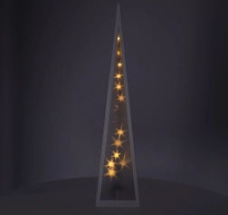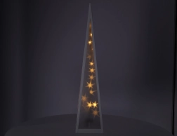 Műanyag piramis fehér fém vázzal, közepén mozgó csillagokkal ✨