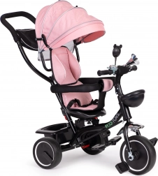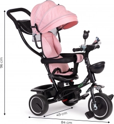 Fedezze fel a sokoldalú ECOTOYS triciklit, amely együtt nő gyermekével. A forgatható ülésnek köszönhetően menetirányba vagy azzal ellentétesen is lehet utazni – a kisebbek így szemkontaktust tarthatnak a szülővel, míg a nagyobbak élvezhetik az előre néző kilátást. A puha háttámla, a 2 pontos övek és a biztonsági karfák stabilitást és kényelmet adnak, az összecsukható napellenző pedig véd a naptól és az enyhe esőtől.