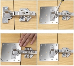 A készlet 4 lemezt és szereléshez szükséges csavarokat tartalmaz, amelyek a bútorzsanérok többségéhez passzolnak a piacon.