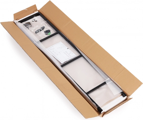 A 12 mm-es négyzetes profilú váz szilárdságot és stabilitást ad, míg az állítható védőlábak megóvják a padlót a sérülésektől. A csomagban szalag és csavarok a falhoz rögzítéshez a nagyobb biztonság érdekében. A termék külön megerősített kartondobozban, védő kitöltéssel kerül csomagolásra a megbízható szállításért.