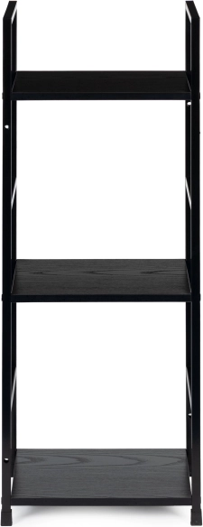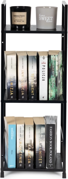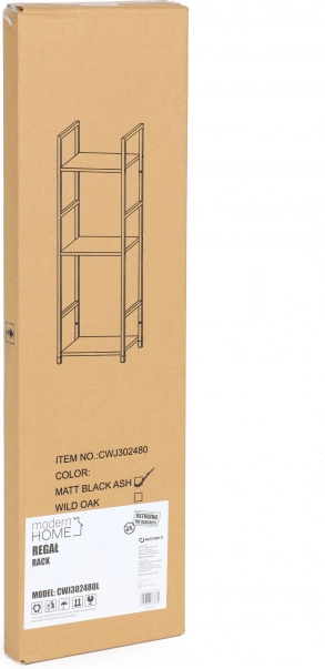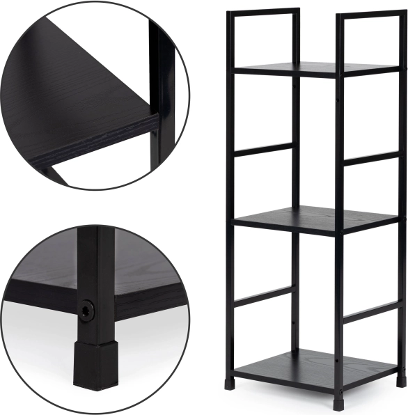 Tiszta vonalak, fekete fém és az MDF polcok fa dekorja teremtenek modern megjelenést, amely remekül kiegészíti a nappalit, hálót és a dolgozószobát.