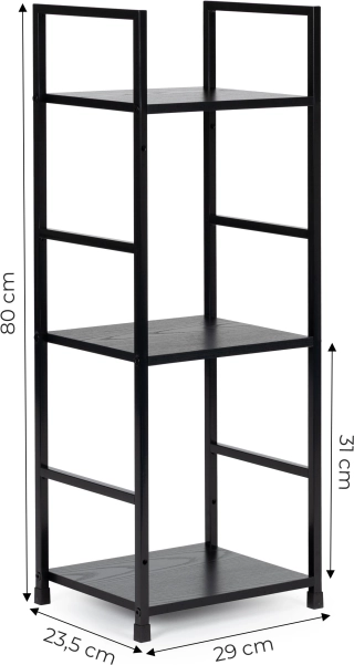 Az elegáns, loft stílusú állópolc funkcionális tárolóhelyet és időtálló dizájnt kínál. A porszórt fémkonstrukció és a fa dekorú MDF polcok tartós, könnyen tisztítható bútordarabot alkotnak. Univerzális kialakításának köszönhetően tökéletesen illik a modern enteriőrökbe.