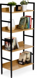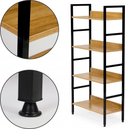 Stílusos loft stílusú állvány fa és fém kombinációjával, amely rendet és dizájnt visz az enteriőrbe. 4 tágas polcot kínál MDF-ből faerezetes dekorral, stabil fémvázzal porfestett felülettel és állítható lábakkal védőtalpakkal. Kompakt méreteinek köszönhetően ideális a nappaliba, hálószobába, előszobába és fürdőszobába, és falhoz rögzíthető a maximális biztonság érdekében.
