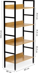 A MODERNHOME loft állvány a modern megjelenést praktikus tárolóhellyel ötvözi. A 60 × 28 cm-es fa polcok elférnek rajta a könyvek, dekorációk, növények és fürdőszobai kiegészítők. A fém szerkezet stabilitást és hosszú élettartamot garantál, míg a védőtalpak és a magasságban állítható lábak óvják a padlót és kiegyenlítik az egyenetlenségeket.