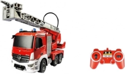A nagy, licencelt, 1:20 méretarányú távirányítós tűzoltóautó a mentők kicsi és nagy rajongóit egyaránt lenyűgözi. Kínál realista LED világítást, funkcionális vízpumpát víztartállyal, forgatható, kihúzható emelőkosarat/létrát és gumírozott kerekeket összkerék-hajtással (4x4). Az ergonomikus 2,4 GHz-es joystickos irányító zökkenőmentes vezérlést biztosít, beleértve a dudát, a szirénákat és a indítógombot.