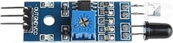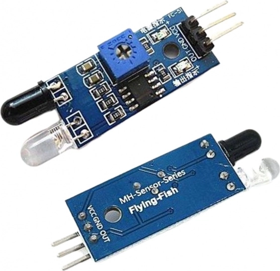 Ez az IR optikai távolságérzékelő rövid távolságban történő tárgyészlelésre készült, gyors és megbízható működéssel. Kombinálja a sugárzót és a vevő diódát, belső komparátor áramkört és vizuális állapotjelzést. A visszavert IR sugár észlelése után az érzékelő kiértékeli az akadály jelenlétét, aktiválja a zöld LED-et, és az OUT kimeneten alacsony szintet generál, amely közvetlenül alkalmas mikrokontroller bemenetére.