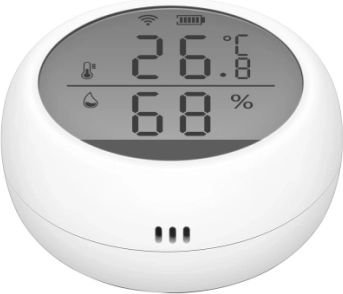 - Okos Wi‑Fi hőmérséklet‑ és páratartalom‑érzékelő kijelzővel