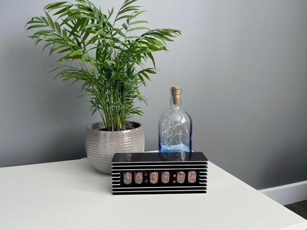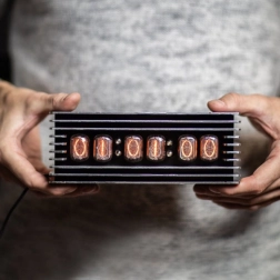 A limitált kiadású Nixie digitron óra az időtlen esztétikát ötvözi a modern, nyomtatott áramköri lapokból készült konstrukcióval. Minden darab történelmi IN‑12 csöveket használ, amelyeket évtizedek óta nem gyártanak, így az óra nemcsak funkcionális kiegészítő, hanem gyűjtői különlegesség is. Ez a változat már össze van szerelve – csak helyezze el, és élvezze a számjegyek ikonikus fényét.