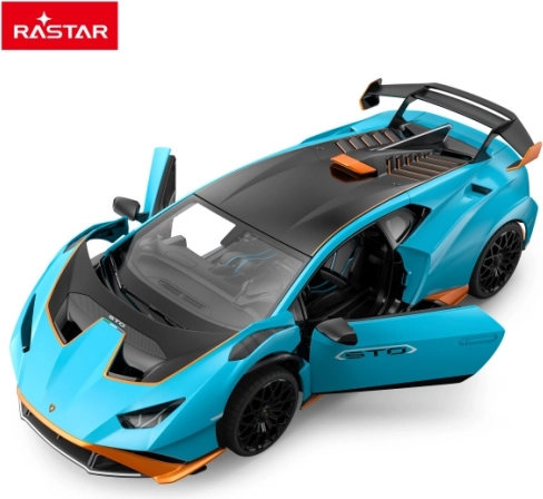 A Lamborghini Huracán STO stílusos RASTAR modellje 1:14 méretarányban precíz részletkidolgozással, sima futással és valósághű LED világítással rendelkezik. A gumibroncsoknak, a független felfüggesztésnek és a minden irányú haladásnak köszönhetően dinamikus és pontos irányíthatóságot kínál. A nyitható ajtók és motorháztető tovább fokozzák a valódi autó hű mását.