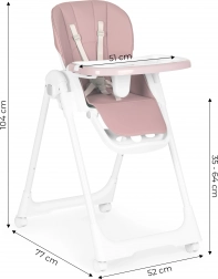 Az ECOTOYS etetőszéket úgy tervezték, hogy helyes és biztonságos testhelyzetet biztosítson étkezéshez és játékhoz. A állítható háttámlának köszönhetően a függőlegestől csaknem fekvő pozícióig, valamint a állítható lábtartóval könnyen a gyermek életkorához és magasságához igazítható. Az állítható ülésmagasság lehetővé teszi a közös étkezést egy asztalnál, és támogatja az egészséges szokásokat.