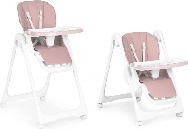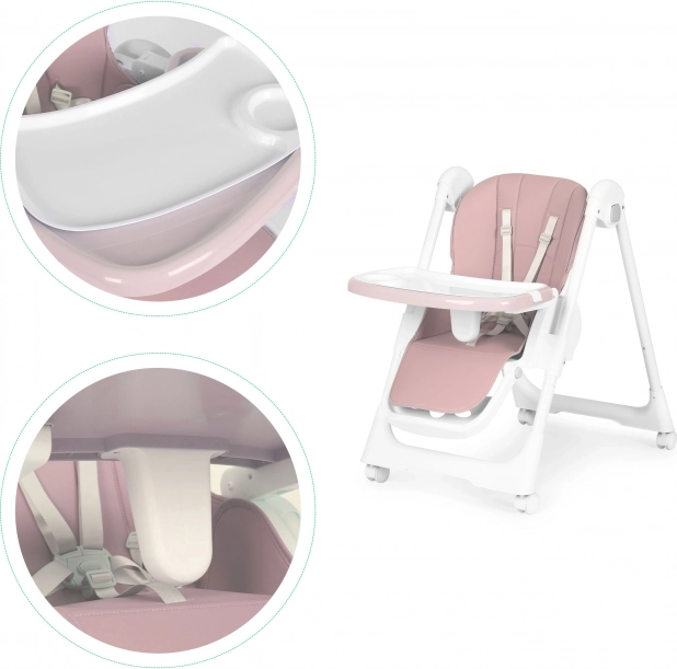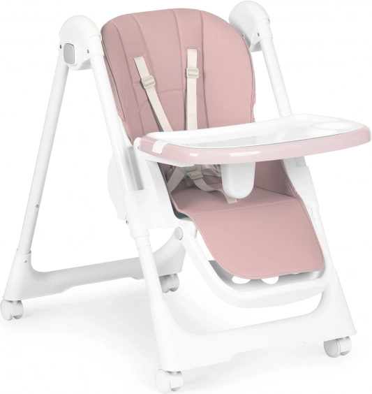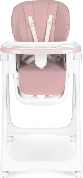 Az eltávolítható kétrétegű tálca magasított peremmel védi a kifröccsenéstől, és külön helyet kínál a pohárnak vagy palacknak. A felső tálcát étkezés után egyszerűen leveheti és megtisztíthatja, az alsó sík felület rajzoláshoz és játékhoz ideális. Az ökobőr huzatot elég áttörölni, míg az 5 pontos övek és a tálca alatti leesésgátló betét biztonságosan a helyén tartja a gyermeket.