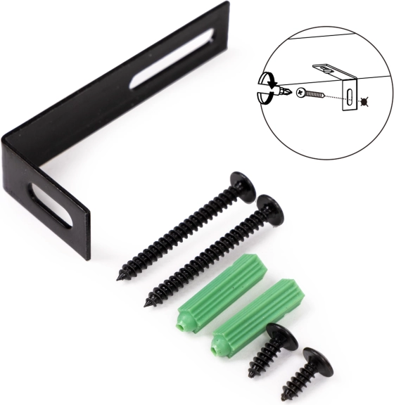 A csomag tartalmaz speciális szögtartót és csavarokat a falhoz rögzítéshez, ami fokozott stabilitást és biztonságot nyújt, különösen, ha kisgyermekek vannak a háztartásban. Erre a stílusos állványra így bármilyen használat során számíthat.