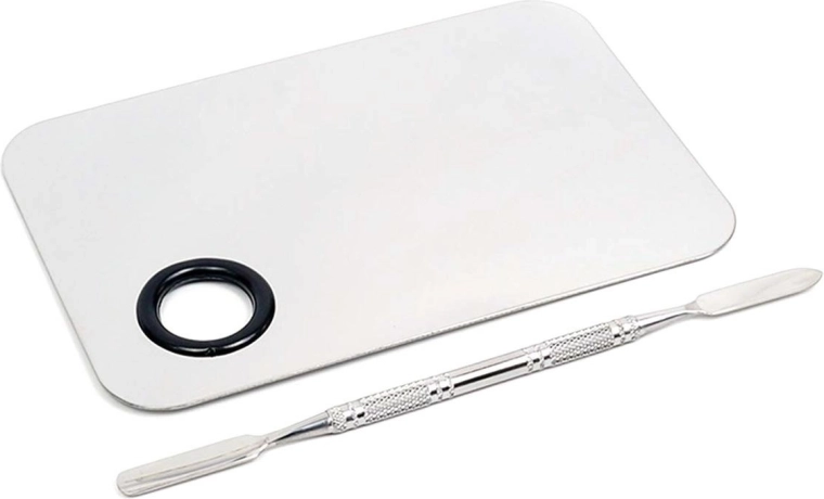 Masszív paletta kozmetikumok keveréséhez. Rozsdamentes acélból készült a könnyű tisztítás érdekében. Különféle szempillaspirál- és szemhéjfesték-színek keverésére szolgál. Körömlakk állványként is használható. A csomagban kiegészítő gombok találhatók.