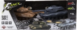A készlet mindent tartalmaz az azonnali játékhoz: 2, részletesen kidolgozott, 25 cm hosszú tank, mindegyik saját frekvencián a zavarásmentes, korrekt összecsapásért. Az irányítás intuitív, a torony teljes, 360°-os tartományban forog. A valósághű hang- és fényhatások fokozzák a hangulatot, az „életek” játékmód pedig eldönti a csata győztesét.