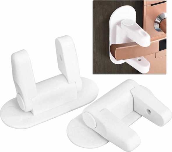 Biztonsági kilincszár, amely megakadályozza, hogy a kisgyermekek kinyissák az ajtót vagy az ablakot. Nagy alaplappal rendelkezik, amely lehetővé teszi a biztonsági eszköz stabil rögzítését a kilincs mögé kétoldalas ragasztószalaggal. A zár szilárdan tapad az ajtó bármely felületéhez és az ablakkerethez. A karok 7 cm mélyen benyúlnak, így megakadályozzák a kilincs elfordítását. A karok végén található kétoldali gombok gyors nyitást tesznek lehetővé a felhatalmazott személyek számára :)