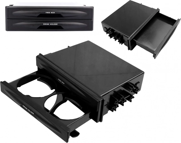 Egy DIN-es autós rekesz pohártartóval, szabványos rádionyílásba (1 DIN) szerelhető. Ez a praktikus pohártartó kényelmes és biztonságos italszállítást biztosít az autóban, különösen a nyitott italoknál. Két rekeszt tartalmaz – a felső tárolóként, az alsó pedig klasszikus pohártartóként szolgál.